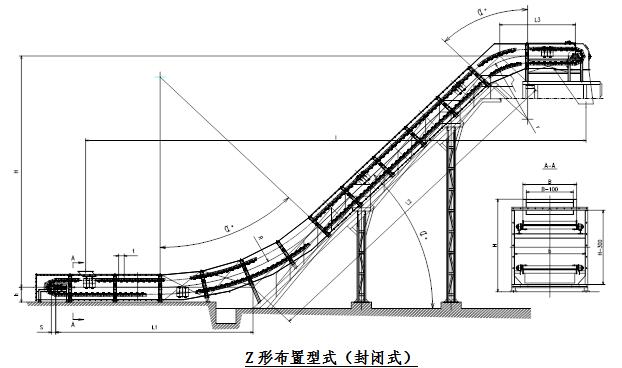 4、最大容積輸送量是按水平布置、最高速度和最厚料層時計(jì)算,若輸送機(jī)較長、被輸送物料密度超過1.8t/m3和溫度高時,則應(yīng)大幅降低速度和料層厚度從而往大的機(jī)型選取,同時張緊行程也會單獨(dú)設(shè)計(jì);若傾斜輸送時盡量將角度布置小,且計(jì)算輸送量時,應(yīng)乘以不同的角度系數(shù)。